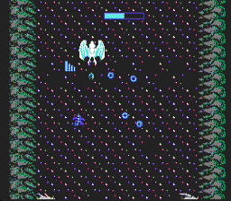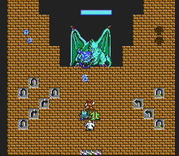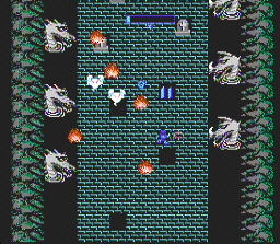 This pteradactyl is the miniboss for all of the first four stages of King's Knight. It's pretty easy. It can be a pain in the ass to beat it with Barusa IF you haven't yet found the weapon power up that precedes this miniboss, but if you've found it, it's not painful.