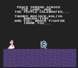 Well, mastered it as much as I'm likely to ever master it, anyway. I beat it years ago, either as a child or a teenager, but generally after beating it, I'd put it away and not play it again for years at a time. Now, lately, I've finished maybe 5 or 6 times within the past couple of weeks. Again, I don't think it's a bad game. Mediocre, maybe, but not bad. Now, I know a lot of people say things like, "This game is just average" about terrible games, where the only thing you can say in their favor is that they're not like Ikari Warriors on the NES. But I'm serious - I'd say King's Knight is better than, say, Super Mario Land. At the very least, it's somewhat original and challenging. So, here's some pictures from the game. I didn't get many pictures from the first four stages because there wasn't, imo, much to comment on.