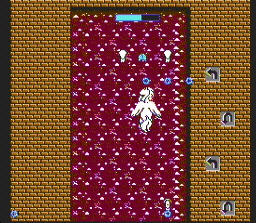 This is one of the few parts of legitimate challenge in King's Knight. All of the first four stages have a hidden cave, where you find the B type magic. They share some similarities; in particular, they all end with the same miniboss. But Toby's is probably the most challenging. Those statues that line the walls spit fire out that you have to weave through, and ghosts fly around and shoot those blue circular bullets at you.